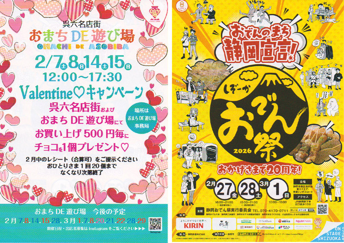 呉六名店街のニュース・イベントをお伝えします 呉六名店街・おまちDE遊び場開催中! しずおかのおまちDE遊び場をつくっていきます。 呉服町呉六名店街を拠点に開催、お楽しみに。 一緒に遊び場を創っていただける出店者も募集中!! キッチンカーも出店できるようになりました!! 街中ではシズカンやさまざまなイベントが目白押しです。 おまちにお越しの際には 呉服町呉六名店街にお越しください。 場所は呉服町スクランブル交差点から ローソンまでの間です。 出店者一同お待ちしております。 おまち DE 遊び場 公式instagramはコチラ